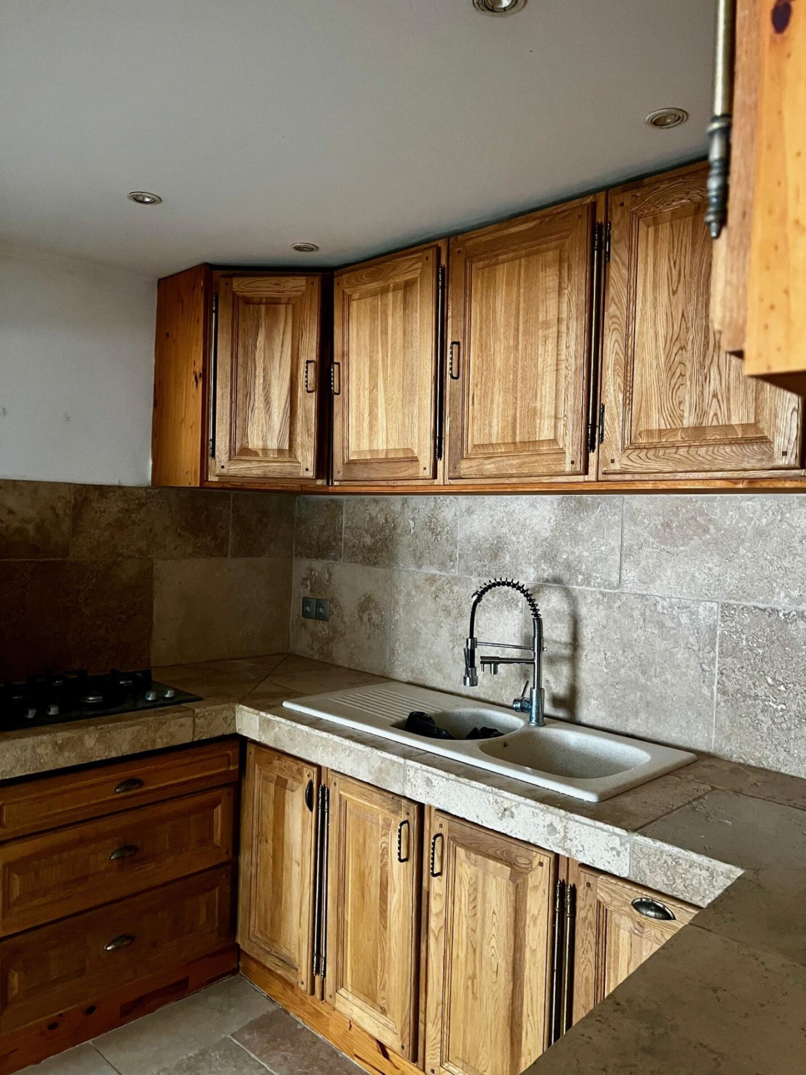 LA TOUR D'AIGUES - 84240 CENTRE-VILLE : Maison de village en souplex de Type 4 comprenant un séjour, une cuisine aménagée et équipée d'une gazinière et d'un four. Deux chambres dont une avec placard. A l'étage du dessous une chambre, ainsi qu'une salle de bain avec WC. Le bien se compose également d'une cave servant de buanderie. Une terrasse compose également le bien avec une autre grande cave aménageable.